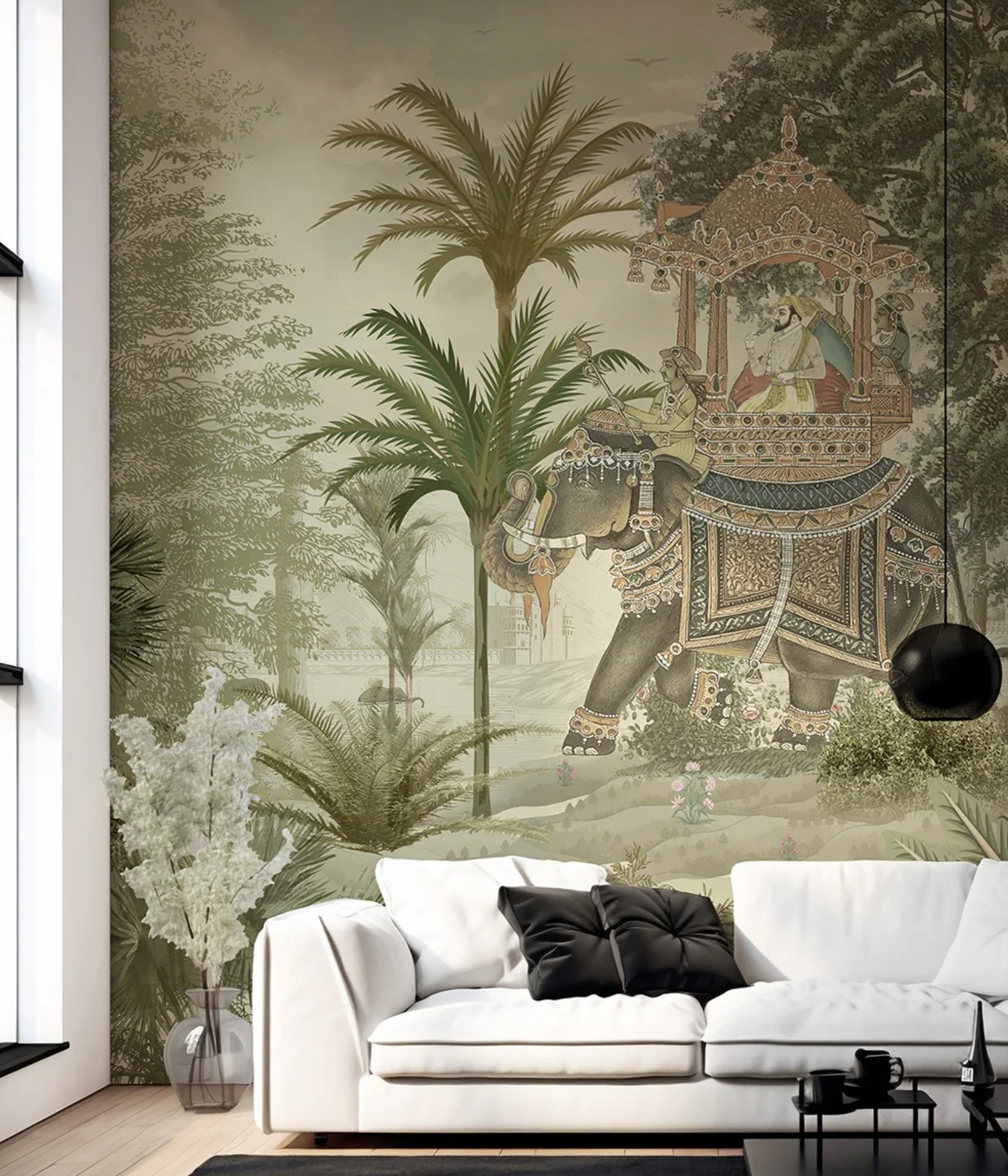 This wallpaper is custom made to order for your exact wall dimensions. After your purchase, our team will email you to confirm measurements and create a custom mockup for approval. We can adjust the scale, placement, and layout of motifs to accommodate architectural elements such as windows, doors, and built-ins before production begins.