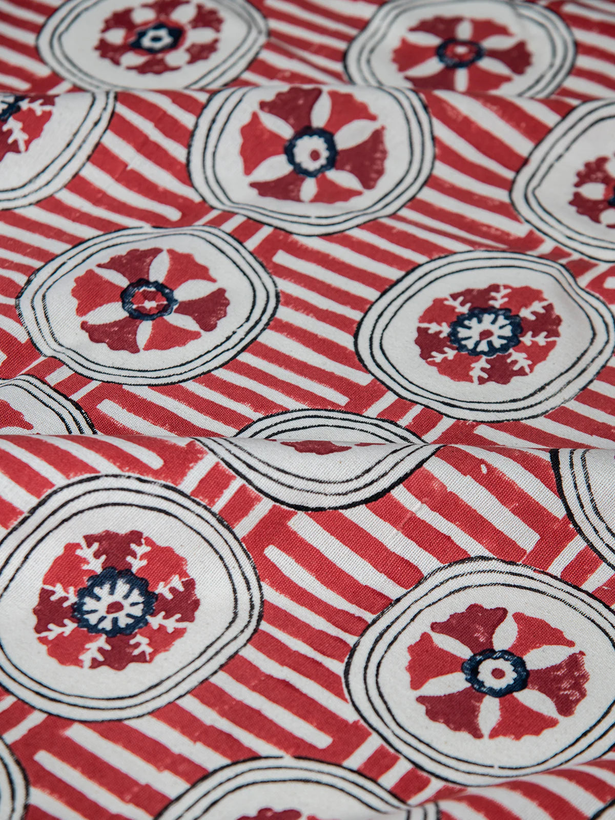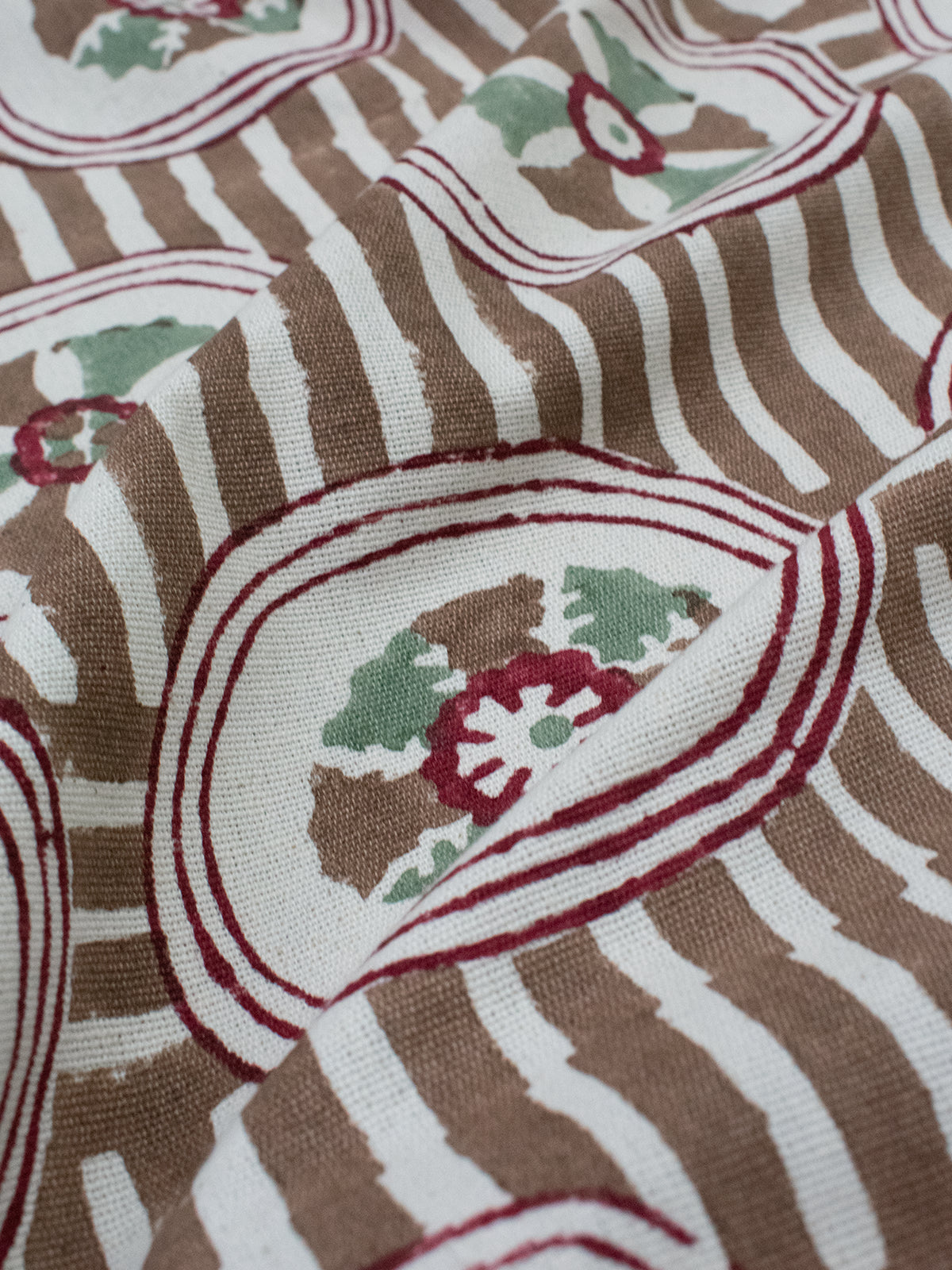 The Suzani Bloom fabric is our take on the traditional Suzani motif with signature circular shapes and patterns. In a vivid colour palette of green & maroon, the fabric makes for an eye-catching addition to your space. The Suzani Bloom fabric is suitable for curtains, blinds and furniture upholstery.