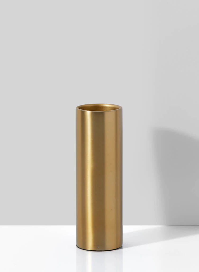 Add a touch of modern elegance to your home with the Aura Vase, crafted in India from solid brass. Its sleek cylindrical design makes it perfect for holding single stems or standing alone as a statement accent. Available in two sizes for versatile styling.