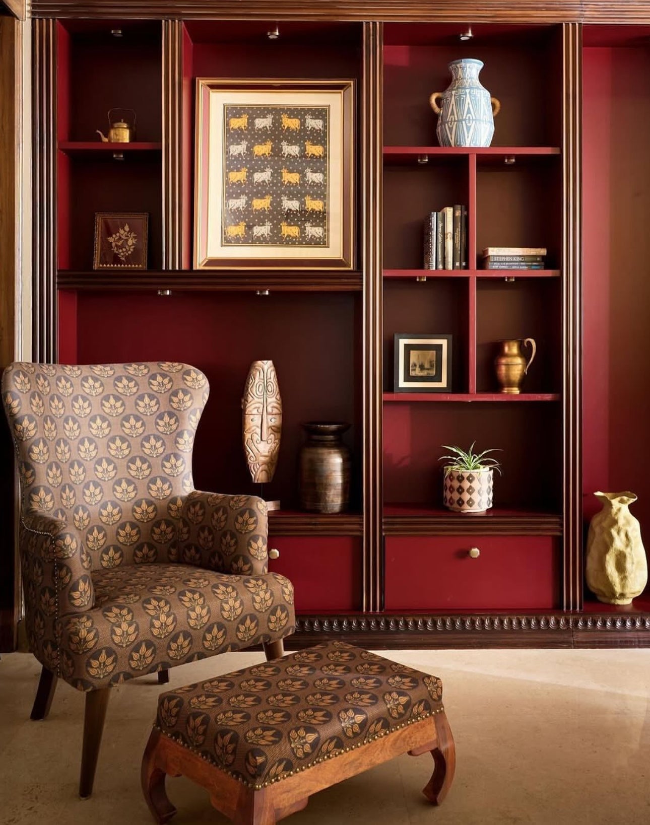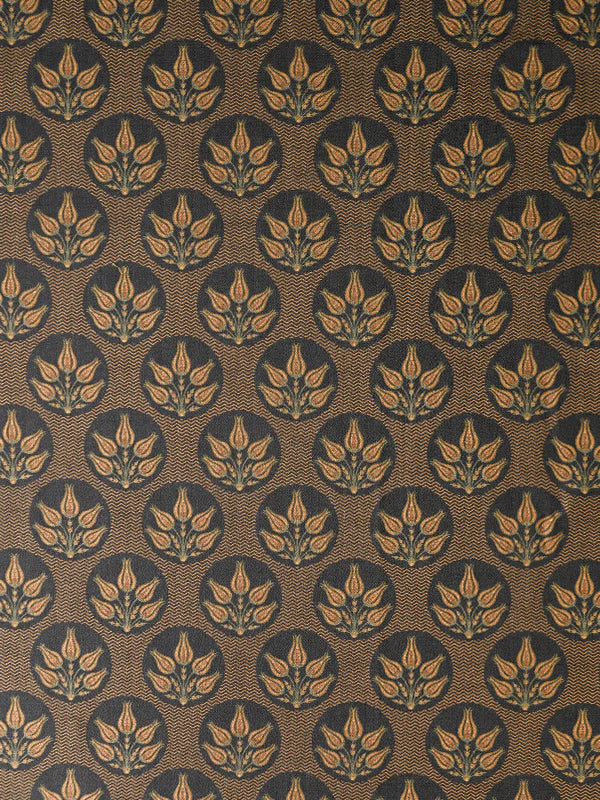 The Eden fabric blends delicate tulip florals with a bold chevron pattern. In rich mustard and olive tones on a deep charcoal base, it adds color and depth to any space. Perfect for curtains, blinds, and furniture upholstery, this statement fabric brings timeless elegance to your home.