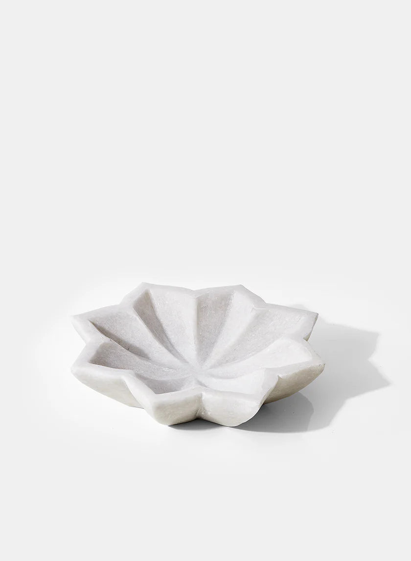The Padma Bowl is hand-carved from solid marble, featuring a striking lotus-petal design. Ideal as a centerpiece, for festive decor, or as a sculptural accent on tables and consoles.